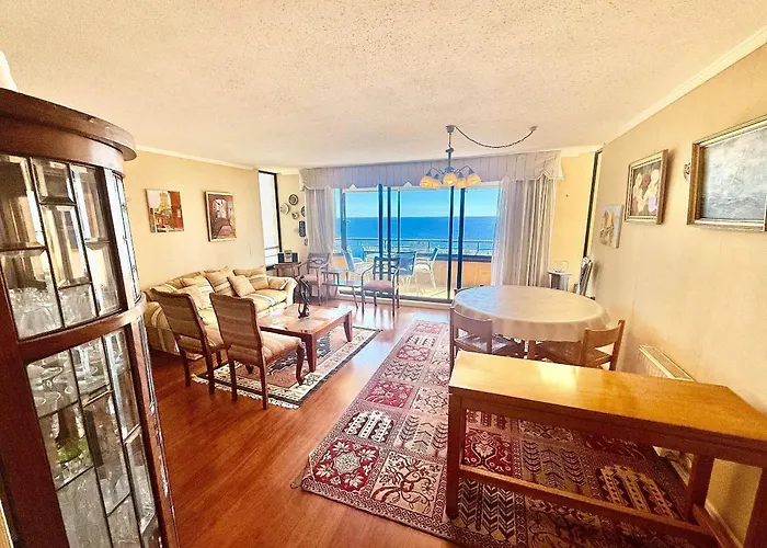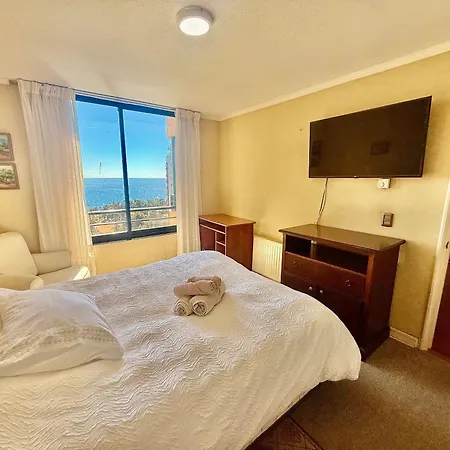 Maravilloso Depto Con Vista Al Mar Vina del Mar apartment is located 3.5 km from El Sol Beach and 19 minutes' walk from the Renaca Sector 2. This apartment is situated within 7 km of Viña del Mar Bus Terminal train station and within reach of Alejandro Navarrete - Pasaje 48 bus station.